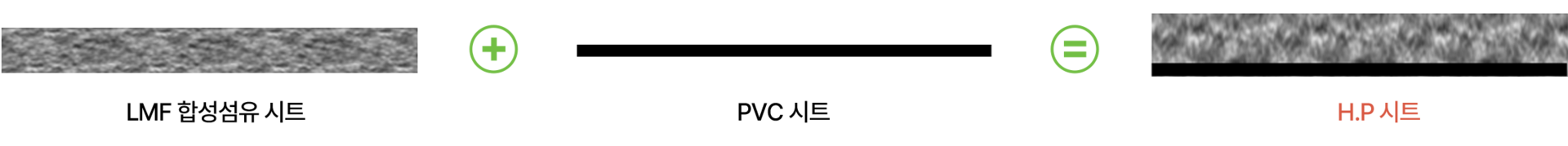하이방수는 고분자 PVC계 합성수지시트(PVC시트)와 저융점섬유(LMF)가 함유된 합성섬유시트를 열융착