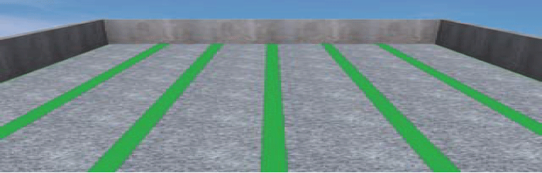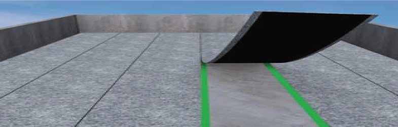 H.P시트 간 이음 부위만 모체에 접착되며, 그 외 방수층은 모체와 절연시공됨으로 모체의 균열 및 온도 변화에