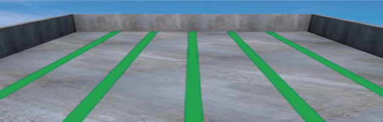 H.P시트 간 조인트 부위에는 상하부 이중조인트 보강 시스템이 적용되며, H.P시트 간 조인트 부위만 모체와 접착되는 절연구조의 방수 공법입니다.