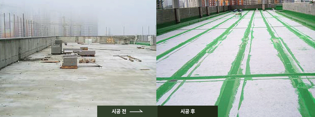 유지관리 용이 외부 물리적 충격에도 잘 견디는 견고한 방수층을 형성하는 하자 없는