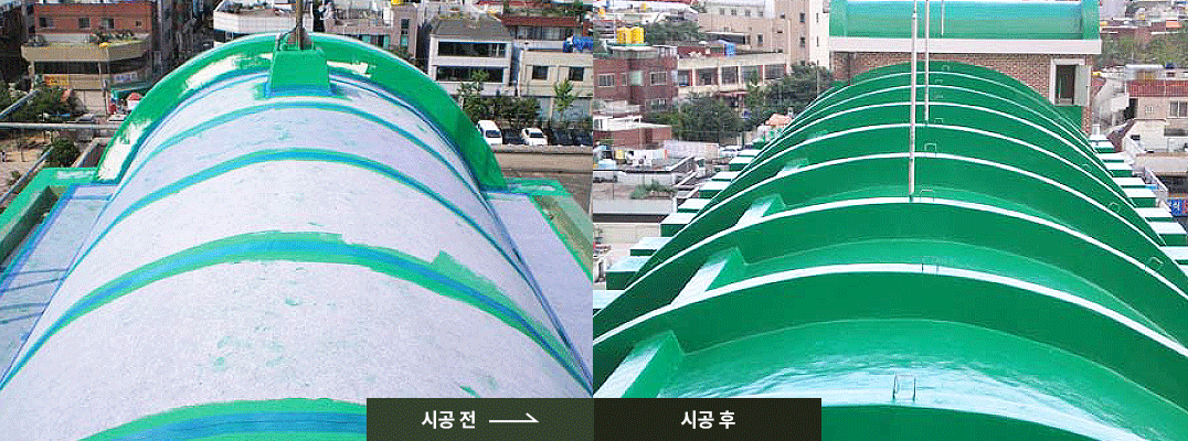 방수층 확보 가능, 돔형&경사 지붕 등 시공 여건이 어려운 구조도 가능