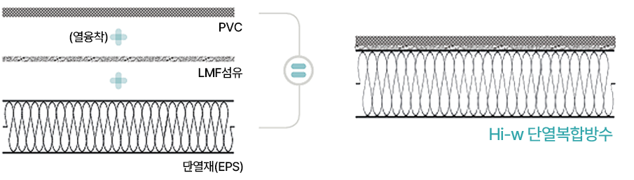 (EPS, 우레탄계 등) 상부에 PVC 시트와 LMF 시트를 열융착하여 일체화한 복합시트를 기반으로 하는