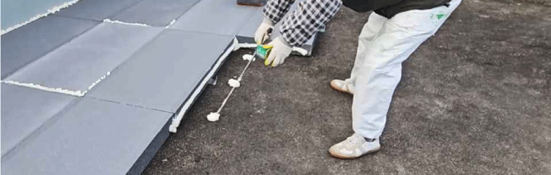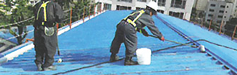 이후 변색이 된 부분에 지정된 색상의 세라믹 코팅재를 도포하여 기존 경사 지붕의 수명을 연장하는 방수·방식의