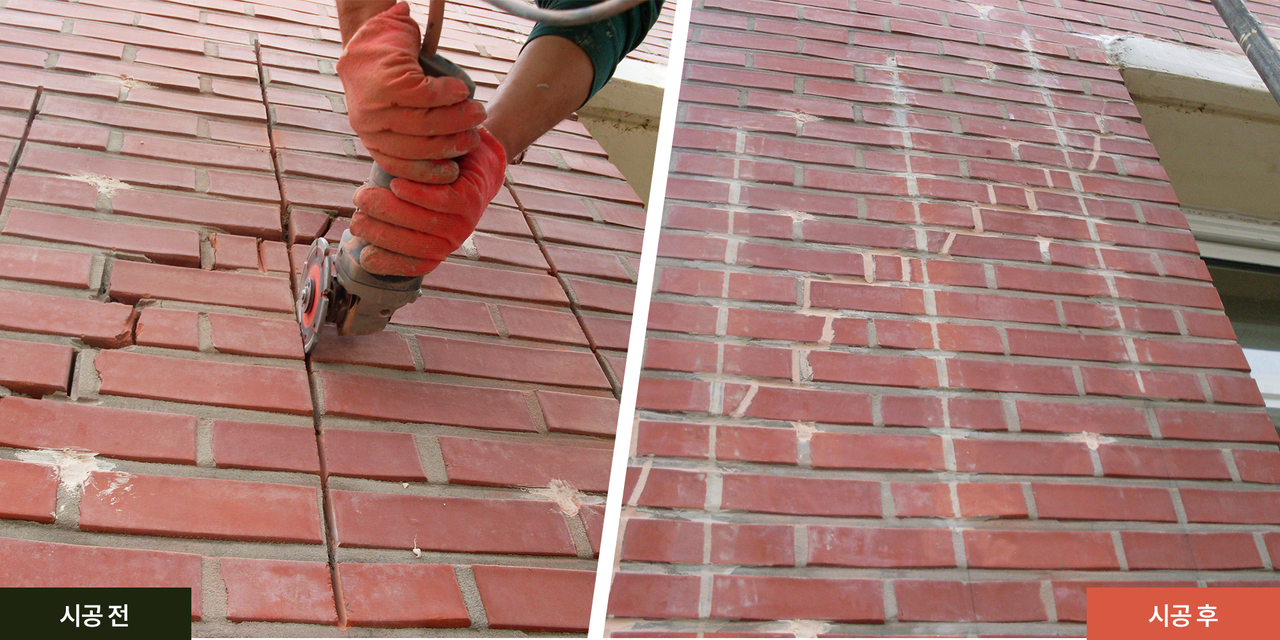 적벽돌의 균열 부위를 컷팅하여 Epoxy로 보수하고