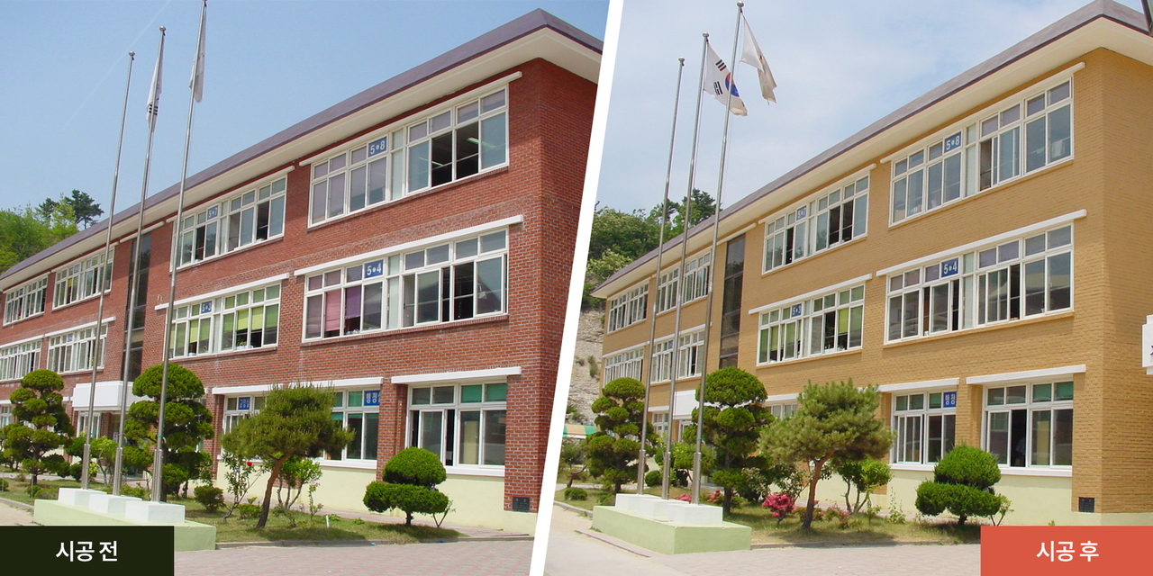 포함 전체면에 도포하여 기존의 적벽돌 건물의 외관을